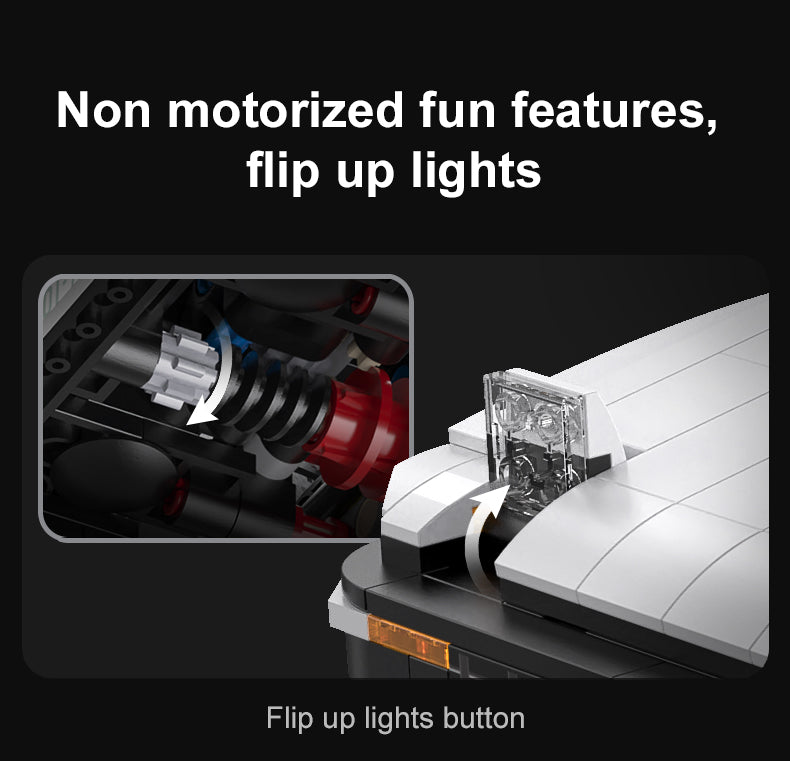 – Interactive Features: Manually open/close doors, trunk, sunroof, and iconic pop-up headlights.