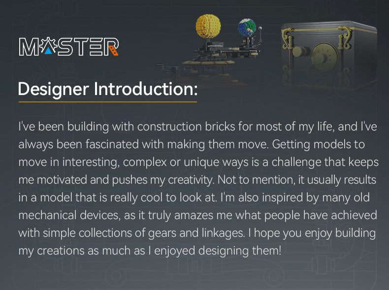 - **Apprentissage STEM :** Explorez les systèmes d'engrenages et les principes de verrouillage grâce à une construction pratique et immersive.