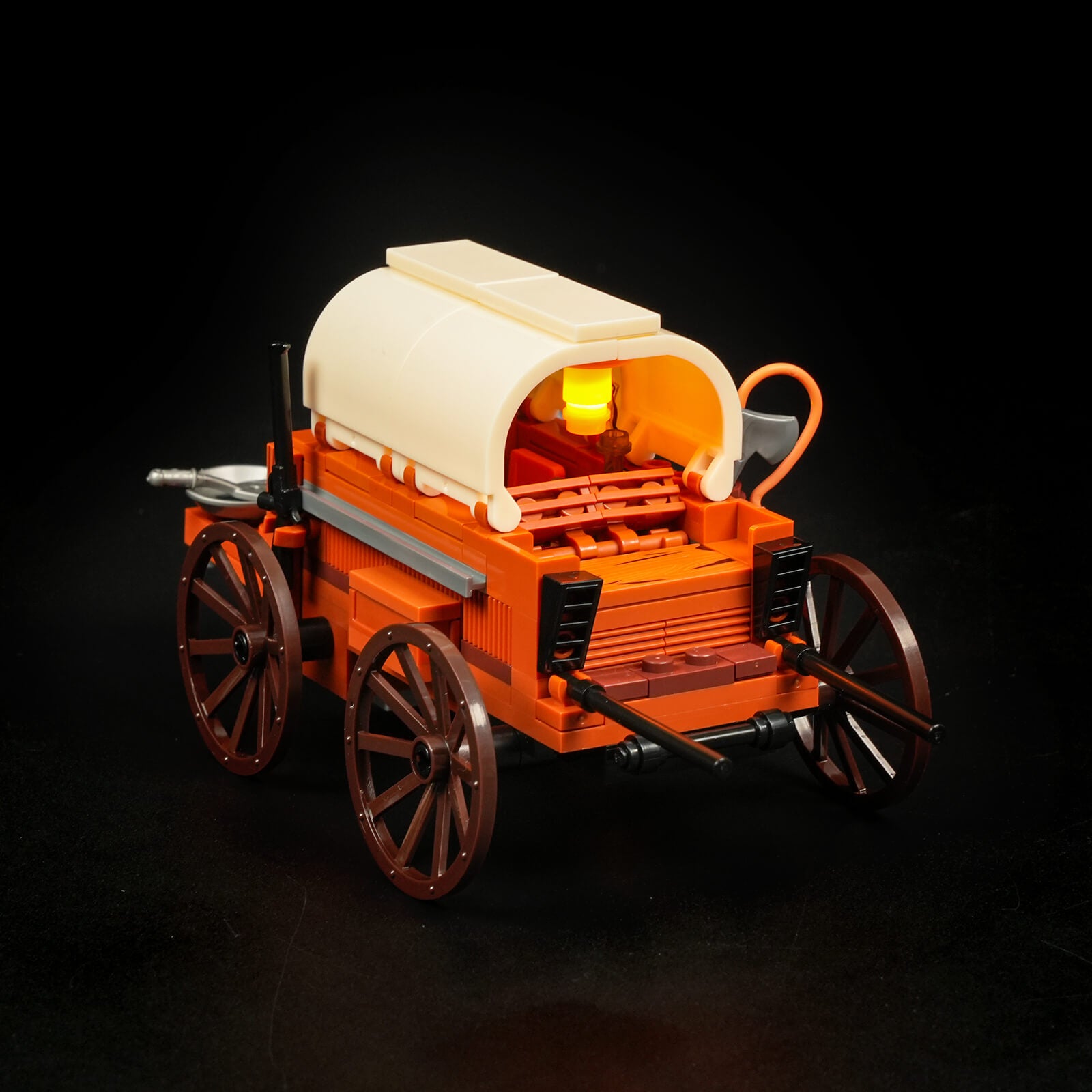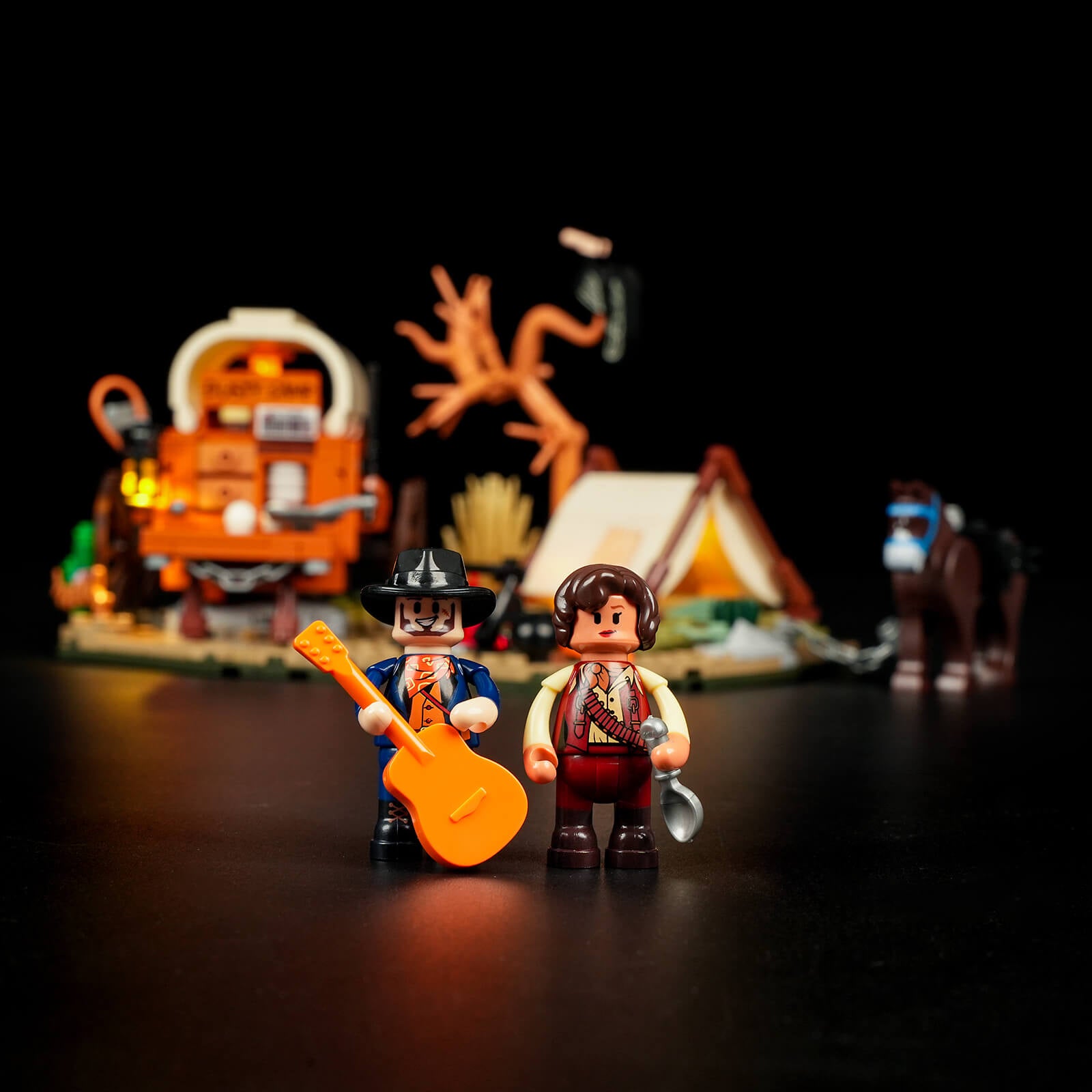 【Restore the 20th century western cowboy camp】 Cowboy camp is a common scene in the west, the set restores the four scenes of cooking car, campfire cooking, tent and dead tree.