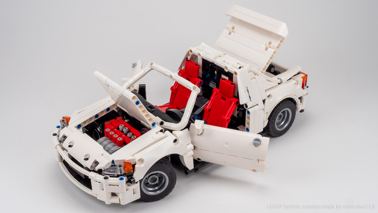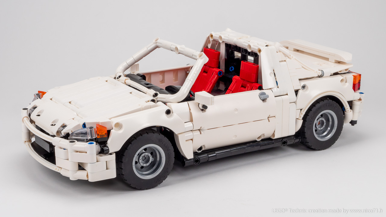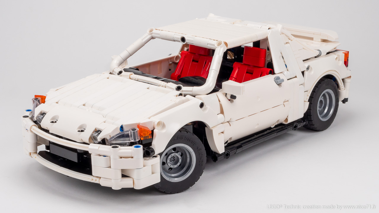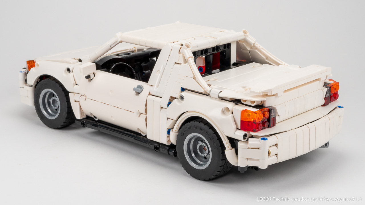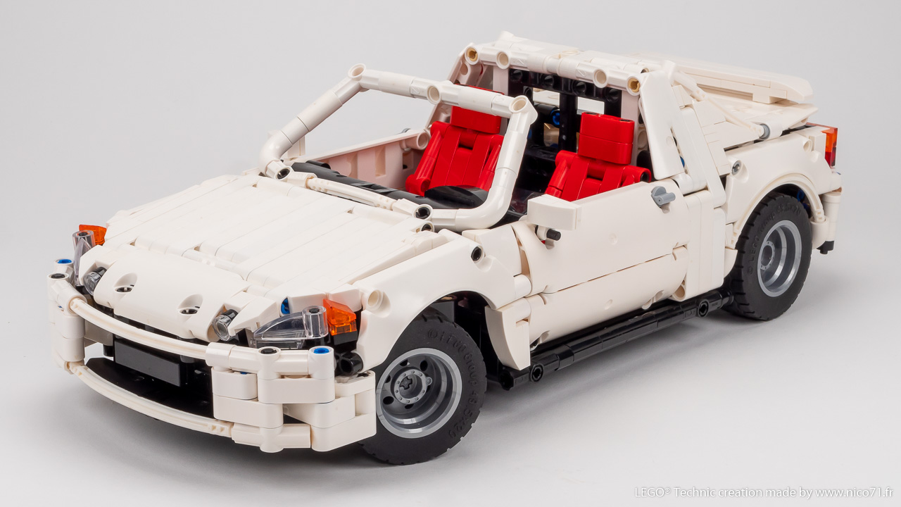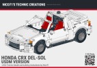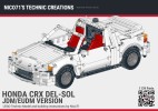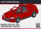 1/12 Replica of a Honda CR-X del Sol composed of LEGO Technic parts. Features front wheel drive with removable fake engine, steering, rear suspensions, openable hood, doors and trunk with targa-top. Available in three versions : white JDM and USDM, red JDM.